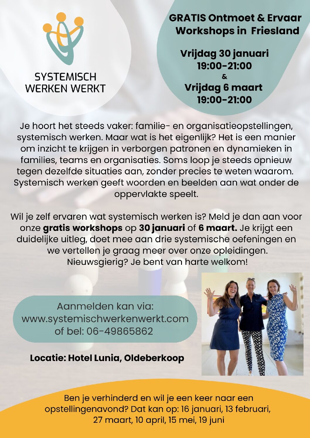 • Gratis Ontmoet & Ervaar workshops: 30 januari en 6 maart